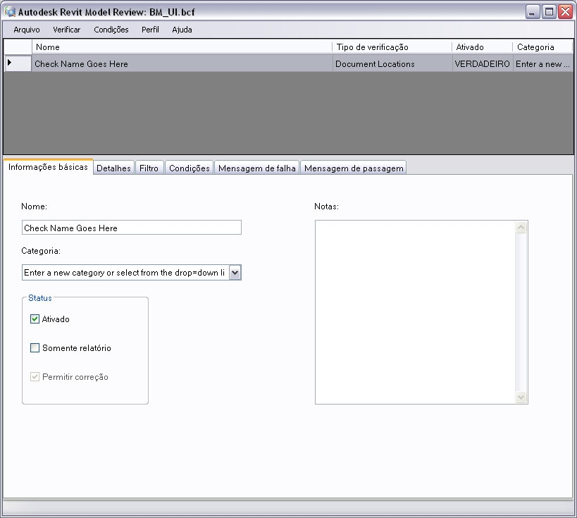 Ao abrir pela primeira vez a parte Gerenciar do Autodesk Revit Model Review é necessário criar e configurar verificações.