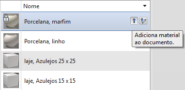 Para adicionar um material para o projeto atual, primeiro encontre um material em uma biblioteca existente e, a seguir, utilize um dos seguintes métodos: