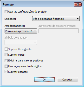 A opção Usar configurações do projeto é selecionada por padrão. Isto significa que o valor é exibido de acordo com a configuração Unidades do projeto.