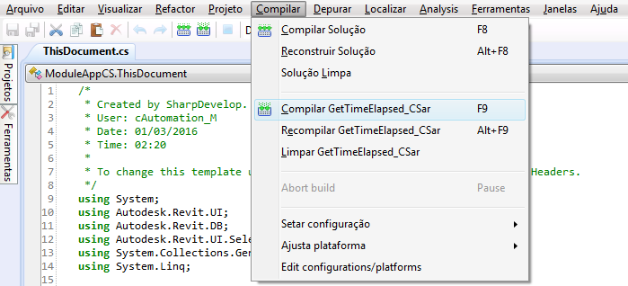 - No IDE de macros do Revit, selecione a opção específica da macro na lista suspensa Build.