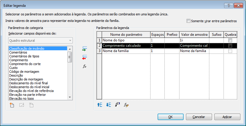 Atribua um único ou múltiplos parâmetros para legendas com a caixa de diálogo Editar legenda.