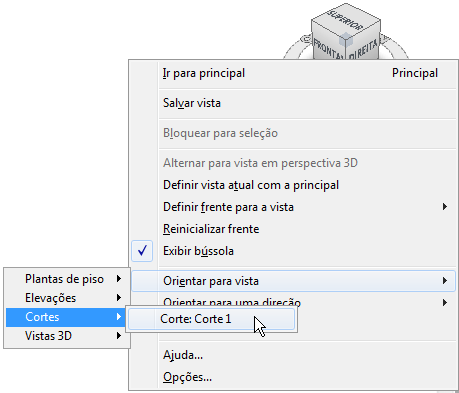 Usando o ViewCube, é possível orientar uma vista 3D para qualquer vista de planta, elevação, corte ou 3D no projeto.