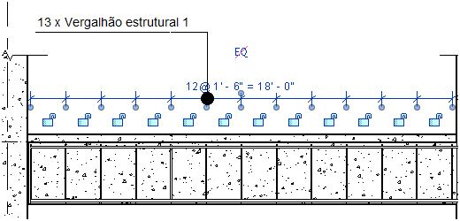 Após adicionar uma anotação de múltiplos vergalhões em uma vista, é possível ajustar as cotas que deseja editar ou reposicionar o texto da cota ou modificar a exibição das cotas.
