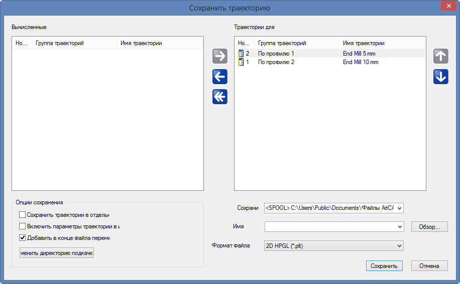 После создания и симуляции траекторий необходимо сохранить их в специальных файлах станков для последующего экспорта на станок с ЧПУ.