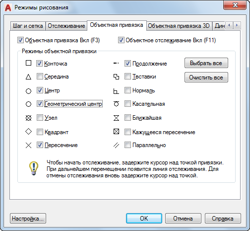 Управление включением или отключением всех указанных режимов объектной привязки. (системная переменная OSMODE)