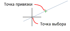 В режиме "Кажущееся пересечение продолжений" привязка осуществляется к точке воображаемого пересечения объектов при продолжении их исходных траекторий. В режимах "Кажущееся пересечение" и "Кажущееся пересечение продолжений" не осуществляется привязка к ребрам или углам 3D тел.