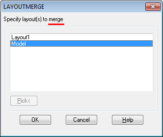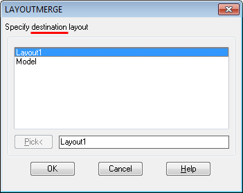 Также доступна версия для командной строки: LAYOUTMERGE. Появляются следующие запросы.