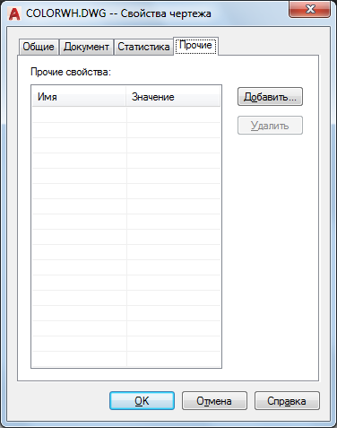 Список заданных пользователем имен и значений свойств текущего чертежа.