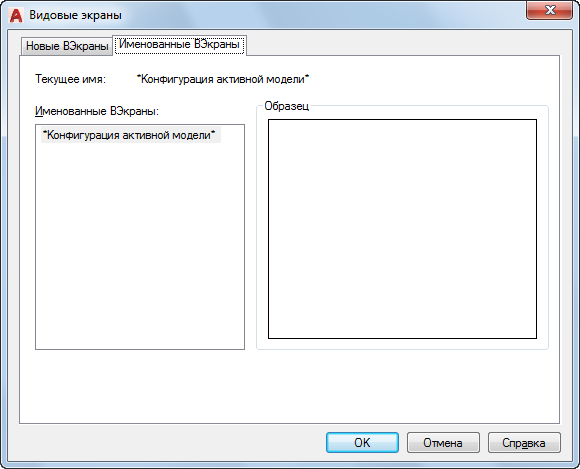 Список конфигураций неперекрывающихся видовых экранов, сохраненных в чертеже. Любую из именованных конфигураций можно использовать на текущем листе. Создавать и сохранять именованные конфигурации плавающих видовых экранов нельзя.