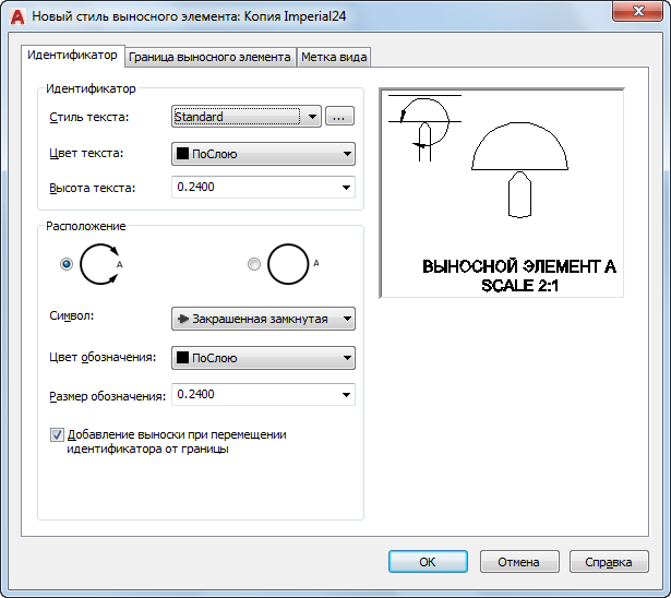 При выборе этого параметра граница выносного элемента будет соединена с идентификатором выноской при перемещении идентификатора с его исходного положения.
