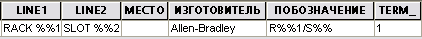 Обратите внимание, что значением атрибута LINE1 является СТОЙКА %%1, а значением атрибута LINE2 — СЛОТ %%2. В запрашиваемые значения %%1 и %%2 вставляется содержимое текстового поля, которое заполняется при получении соответствующего запроса. Неизменяемый текст "СТОЙКА" и "СЛОТ" появляется в атрибутах сразу после создания модуля ПЛК. Обычно используется несколько запрашиваемых переменных от %%1 до %%9. Запрашиваемые строки могут быть добавлены к любым атрибутам на клемме. Если требуется добавить другие запросы, не затрагивая существующих атрибутов, необходимо изменить файл клеммной колодки, добавив в него такие атрибуты, как LINE3.