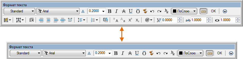 Управляет отображением панели "Форматирование текста". Этот параметр устанавливает значение системной переменной MTEXTTOOLBAR. (Параметр недоступен для однострочного текста.)