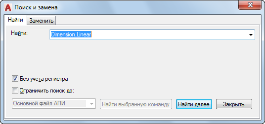 Выполняет поиск всех команд или свойств команд независимо от регистра (например, программа будет производить поиск по слову ОТРЕЗОК и по слову отрезок).