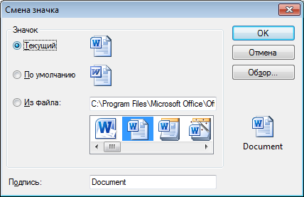 Обеспечивает возможность выбора значка из файла (допустимые типы файлов: EXE, DLL и ICO).