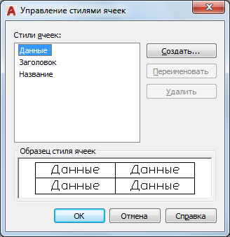 Отображение всех стилей ячеек, содержащихся в текущем стиле таблиц; возможность создания и удаления стиля ячеек.