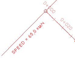 Рассмотрите метку проектной скорости. Стиль этой метки будет использоваться как основа для создания нового стиля меток, предназначенного для представления проектной скорости без метки пикета. Метки проектной скорости будут размещены в тех местах, где пикеты уже имеют метки.