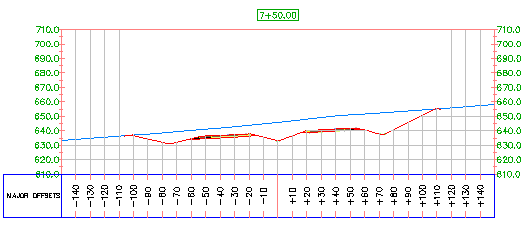 На сечениях отображаются отметки на осях сечений, которые создаются перпендикулярно к трассе. Сечения можно получить из поверхностей, моделей коридоров и поверхностей коридоров. Кроме того, они могут быть или динамическими, или статическими. Если вносятся изменения в поверхность или коридор, динамические сечения обновляются автоматически. Статическое сечение показывает отметки на момент своего создания и не реагирует на последующие изменения геометрии. Подобным образом, динамические оси сечения, связанные с трассой, перемещаются при редактировании трассы.