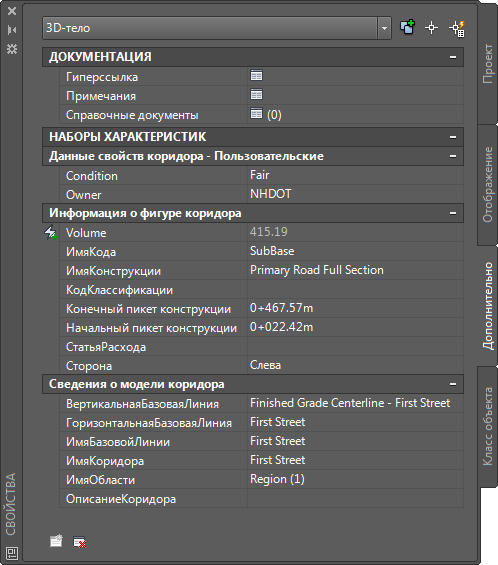 По умолчанию AutoCAD Civil 3D содержит три определения наборов свойств, которые применяются к коридорам и 3D-телам и корпусам: