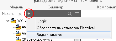 Независимые и связанные виды снимков отображаются на панели "Виды снимков". Если панель «Виды снимков» не отображается, ее можно вызвать, щелкнув значок «+» в строке заголовка обозревателя модели.