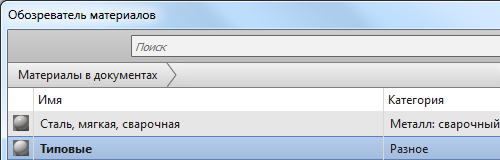 - Откройте Обозреватель материалов; в разделе "Материалы в документах" можно будет увидеть материал. Данный материал еще пока не представлен в библиотеке для использования с другими компонентами.