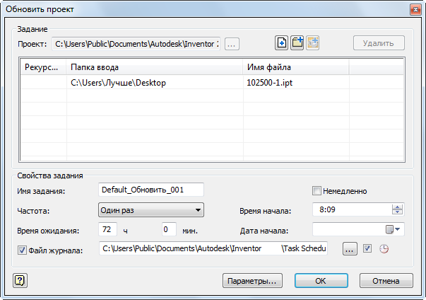 - Настоятельно рекомендуется создать резервные копии всех файлов Autodesk Inventor, прежде чем использовать планировщик заданий. Убедитесь в том, что резервная копия сохраняет исходную структуру папки, чтобы можно было легко восстановить файлы при необходимости. (Включены все файлы, используемые в проектах: файлы деталей (IPT), сборок (.iam), схем (.ipn), чертежей (idw), таблиц Microsoft Excel (.xls), параметрических элементов (.ide) и проектов (IPJ).)