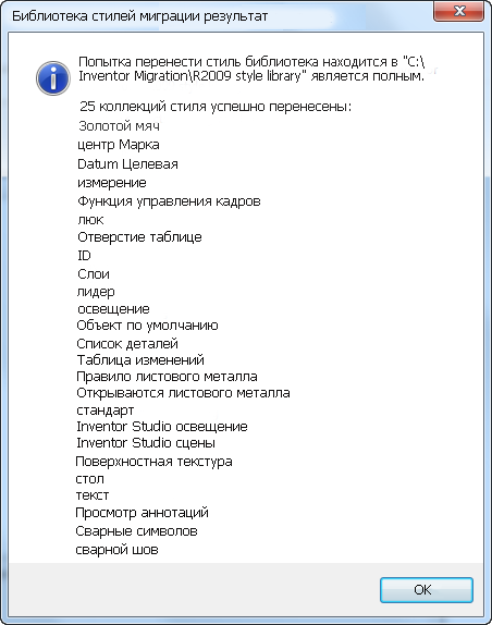 - Если библиотека стилей, поставляемая с предыдущей версией, не изменялась, нет необходимости переносить ее. Используйте библиотеку стилей, которая поставляется вместе с новой версией Inventor.
