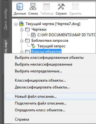 Для создания файла определения классов объектов перейдите на вкладку Обозреватель карт на панели задач. Этот файл можно создать в любой карте.
