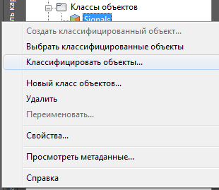 Правой кнопкой щелкните класс объектов "Сигналы" на вкладке "Обозреватель карт"панели задач и выберите команду "Классифицировать объекты".