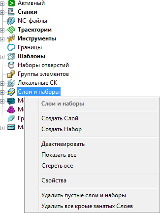 Чтобы показать это меню, в Проводнике щелкните правой кнопкой мыши по ветви Слои и наборы.