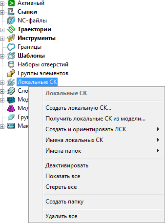 Используйте меню Локальные СК, чтобы создавать и управлять системами координат в текущем проекте.
