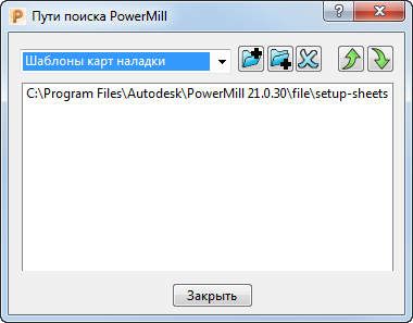 - В диалоговом окне PowerMill PowerMill в списке выберите Шаблоны карт наладки. Это покажет путь к текущему выбранному набору шаблонов.