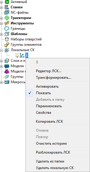 Редактор ЛСК — выберите, чтобы изменить положение и ориентацию рабочей плоскости с помощью вкладки Редактор ЛСК.