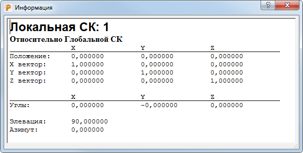 Элевация и Азимут - это углы оси Z активной ЛСК относительно глобальной системы координат.