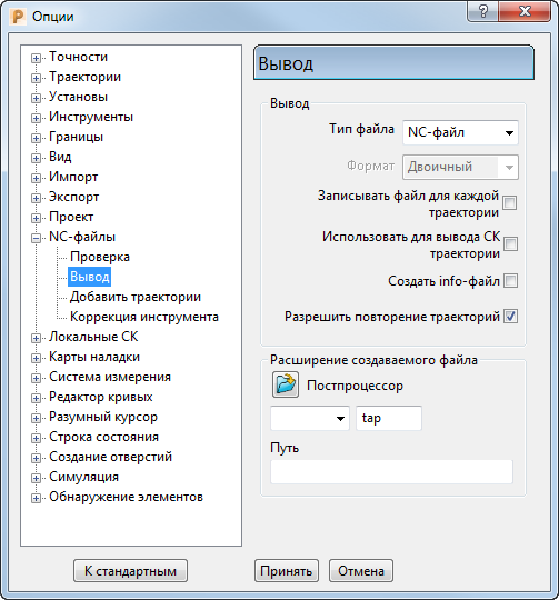 Выберите вкладку «Файл» > «Опции» > «Параметры приложения», чтобы открыть диалоговое окно Опции и задать параметры и значения по умолчанию для PowerMill. Чтобы задать опции, выберите категорию в дереве диалога, отредактируйте параметры, затем нажмите OK, чтобы закрыть диалог и сохранить изменения.