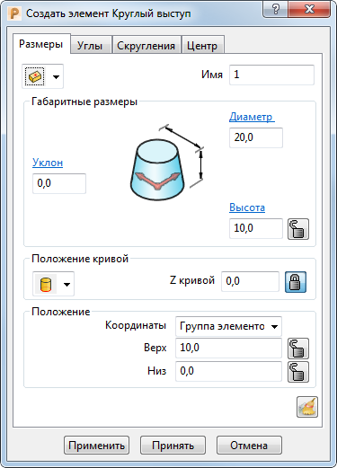 «Диаметр» — введите диаметр элемента.