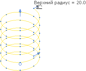 Или же можно создать винтовую линию графически. Например, если выбрать маркер верхнего радиуса (курсор меняется на
