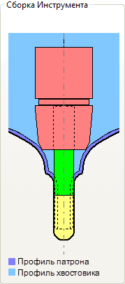 Сборка инструмента — Эта область показывает заданные детали сборки инструмента, а так же профиль патрона.