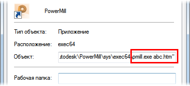 Если хотите, вы можете поместить html-файл в любую другую директорию. В этом случае введите полный путь в поле Объект. Например, …\pmill.exe D:\MyHTML\abc.htm.