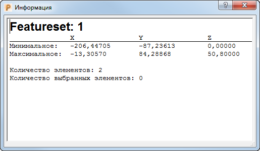 Если нет выбранных элементов, отображается протяженность всего набора элементов, то есть появляется тот же диалог, что и при выборе Свойств в контекстном меню отдельного набора элементов.