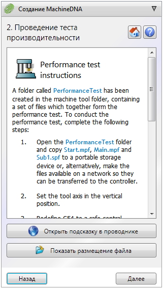 Чтобы сгенерировать данные, необходимые для MachineDNA, проведите тест производительности MachineDNA на выбранном станке.