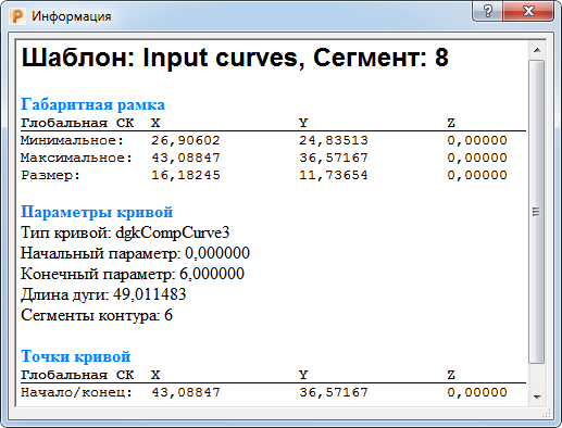 - Свойства — Выберите, чтобы показывает протяженность, тип и ключевые точки кривой.