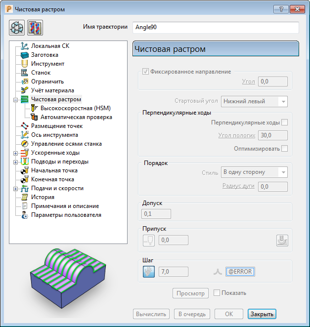 В случае траектории чистовой обработки растром откроется диалог Чистовая растром: