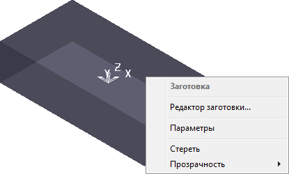 Чтобы получить доступ к контекстному меню заготовки, щелкните по нему правой кнопкой мыши в графическом окне.