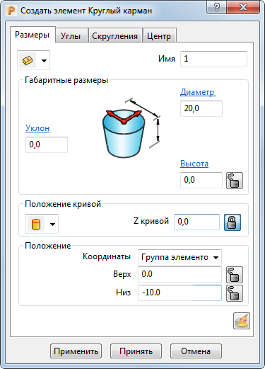 Уклон — Введите угол уклона элемента. Это угол стенки пресс-формы, таким образом, отверстие матрицы шире ее основания, что позволяет с большей легкостью извлекать деталь.