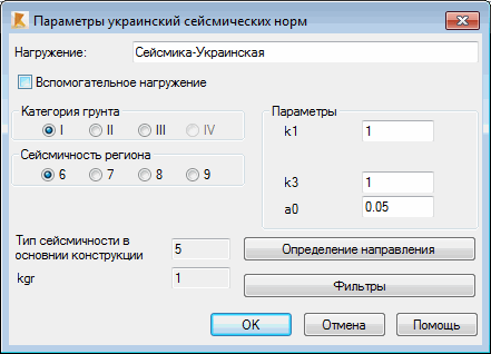 Параметры сейсмического расчета конструкции зависят от выбора сейсмических норм, по которым производится расчет влияния сейсмических нагрузок на конструкцию. При выборе украинских сейсмических норм в диалоговом окне Новый вариант при нажатии на кнопку Параметры в диалоговом окне Тип расчета.