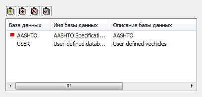 Чтобы открыть диалоговое окно База данных транспортных средств, необходимо выбрать команду меню Инструменты > Рабочие настройки > Базы данных > Транспортные нагрузки.