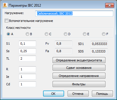 Выберите американские нормы IBC (Международные строительные нормы) 2009 или 2012 в диалоговом окне Описание нового нагружения или нажмите кнопку Параметры в диалоговом окне Тип расчета.