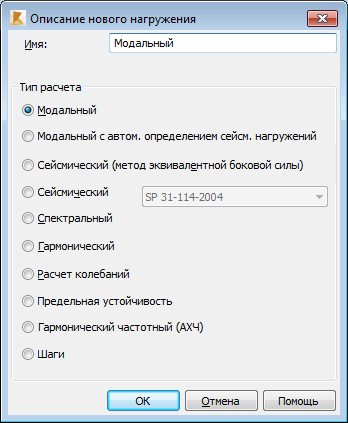Диалоговое окно "Описание нового нагружения"
