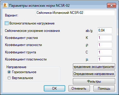 Параметры сейсмического расчета (Испанские нормы NCSR-02)