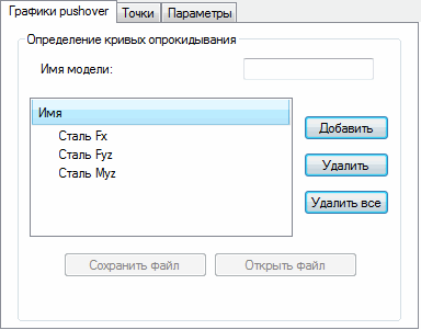 Нажатие кнопки Удалить приводит к удалению активной модели шарнира из списка моделей. Нажатие кнопки Удалить все приводит к удалению всех модели шарнира из списка.